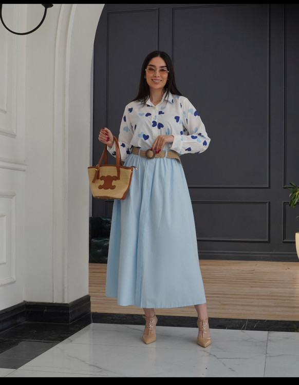 رنگ قلب های شومیز با رنگ دامن ست شده است