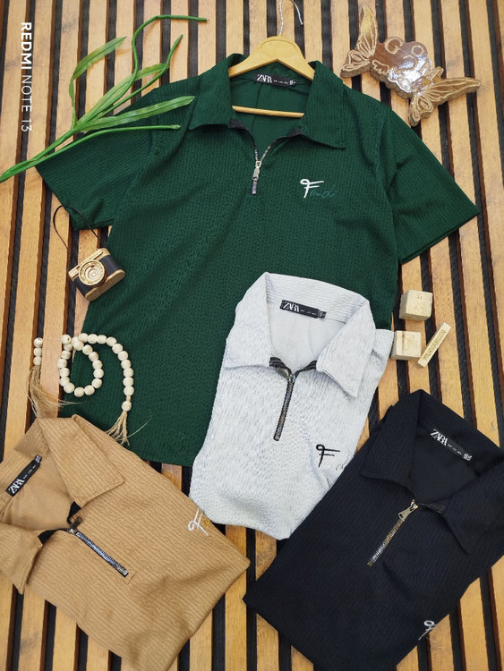 👚 کالا : تیشرت تک مردانه یغه پیراهنی یغه زیپ مراکشی جلو گلدوزی 👌🖐️😻