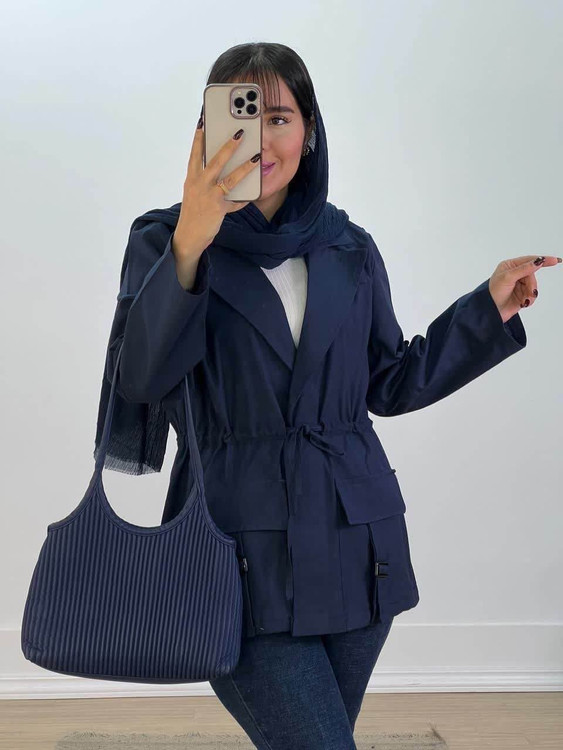 مانتو لینن زنانه جیب سگک